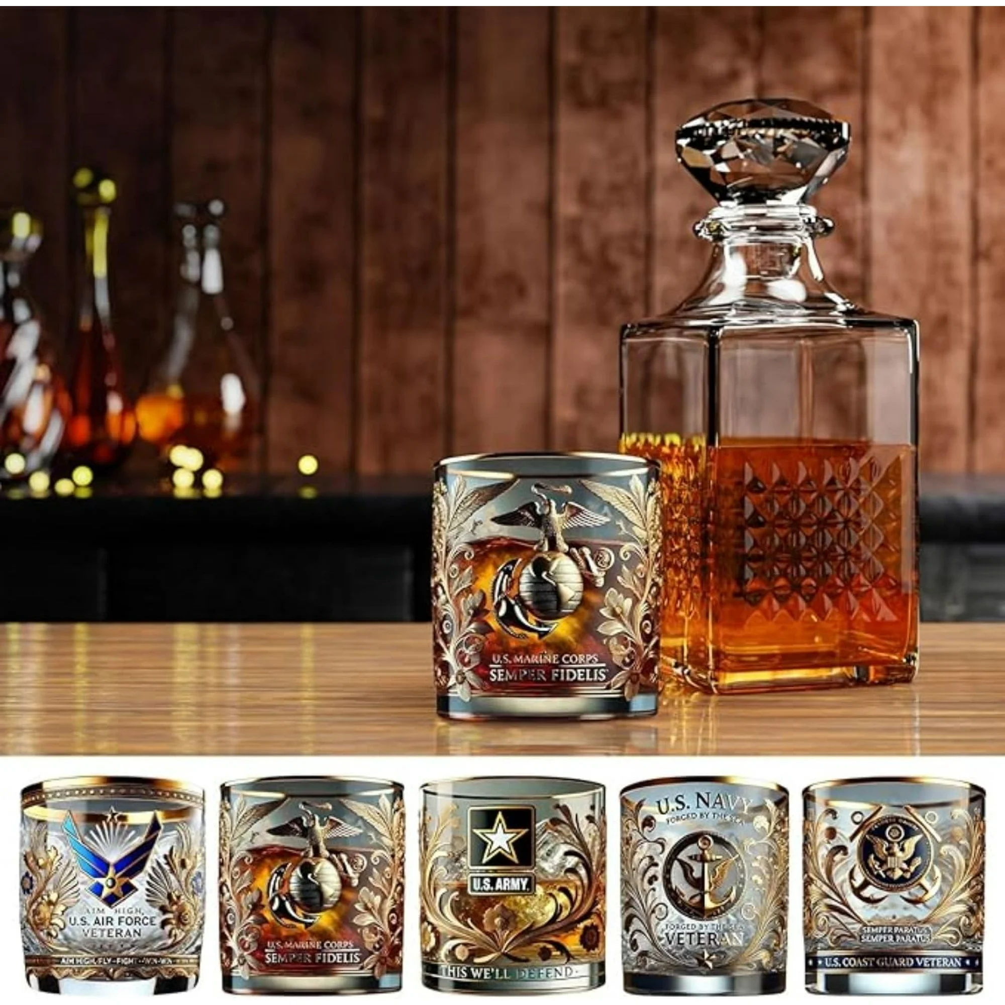 • 250th Anniversary Veteran U.S. Military Tribute Whisky Decanter, Engraved Army Marines Navy Air Force Coast Guard,Anniversaries Parties and Collectors Gift - Giftroza